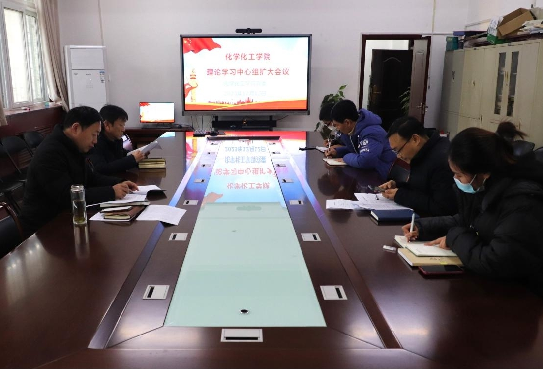 12月12日下午,化学化工学院在学院会议室召开党委理论学习中心组(扩大)会议,学院党政领导、科级干部和全体辅导员参加了会议。会议由学院党委书记孙震寰主持。