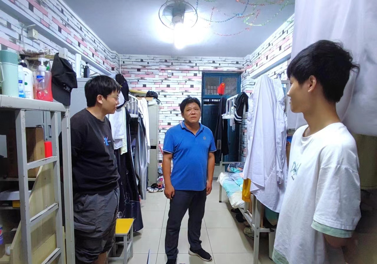 在走访过程中,院党委书记赵亦芳等领导与广大学生亲切交流,了解学生思想动态、学习和生活中存在的困难、考研准备情况等,耐心倾听并解答了学生关心关注的问题,引导广大学生努力学习,为实现人生理想努力奋斗。赵亦芳叮嘱同学们搞好宿舍卫生,减少聚集、勤洗手、多通风,积极配合学院做好疫情防控工作。同时,要注意用电安全,防范网络诈骗。外出时要履行请假手续,并做好个人防护。