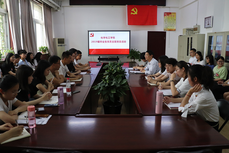 为加强对毕业生党员的思想教育,教育引导毕业生党员不忘初心、牢记使命,建功立业新时代,5月24日下午,化学化工学院在学院会议室举行了2019届毕业生党员主题党日活动。学院党委副书记朱宏出席本次活动,学院团委书记侯小鹏和2019届全体毕业生党员参加活动。活动由侯小鹏主持。