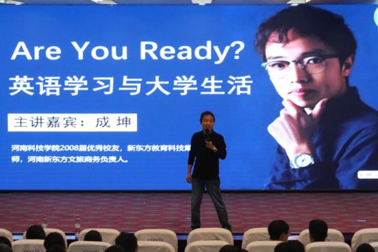 为引导在校生做好大学生活规划,养成良好的英语学习习惯,10月12日晚上,化学化工学院于图教201举办第十八期“化梦领航工程”暨大学生成长报告会。报告会邀请我校2008届优秀校友、新东方教育科技集团教师、河南新东方文旅商务负责人成坤主讲。会议由学院团委副书记顾肖肖主持,学院党委书记孙震寰出席。师生共计300余人参加报告会。