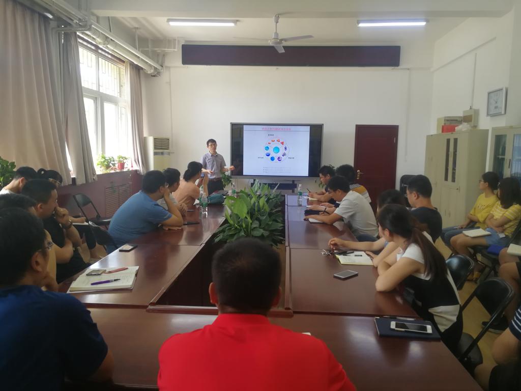 7月1日上午,应化学化工学院邀请,华中科技大学邓仁华研究员在学院会议室作了题为“主客体相互作用调控嵌段共聚物组装结构 ”的学术报告。学院教师、本科生和研究生代表近50人聆听了报告。化学化工学院副院长陈军主持报告会并致欢迎辞,简要介绍了邓仁华研究员的学术经历、研究方向及研究成果。