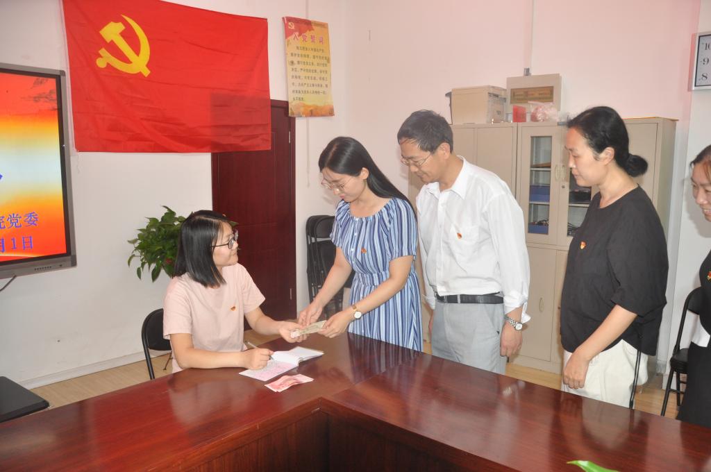 全体党员怀着激动的心情,再次面对鲜艳党旗举起右手,庄严宣誓,用坚定有力的声音重温入党誓词。随后,全体党员履行党员义务,集中缴纳党费。通过这次活动,大家纷纷表示,将继承和发扬革命先烈遗志,坚定理想信念,听党话、跟党走,立足本职,勤奋工作,永葆共产党员先进性,在教书育人工作中充分发挥党员的先锋模范作用,以实际行动向建国70华诞、建校80周年献礼。