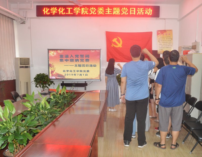为庆祝中国共产党建党98周年,引导广大党员不忘初心、牢记使命,7月1日上午,化学化工学院党委组织党员开展“重温入党誓词、集中缴纳党费”主题党日活动。