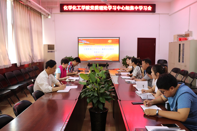 7月9日上午,化学化工学院党委理论学习中心组在学院会议室举行集中学习会,专题学习习近平总书记在“不忘初心、牢记使命”主题教育工作会议上的重要讲话精神。学院党委委员、全体支部书记和辅导员参加了学习会。