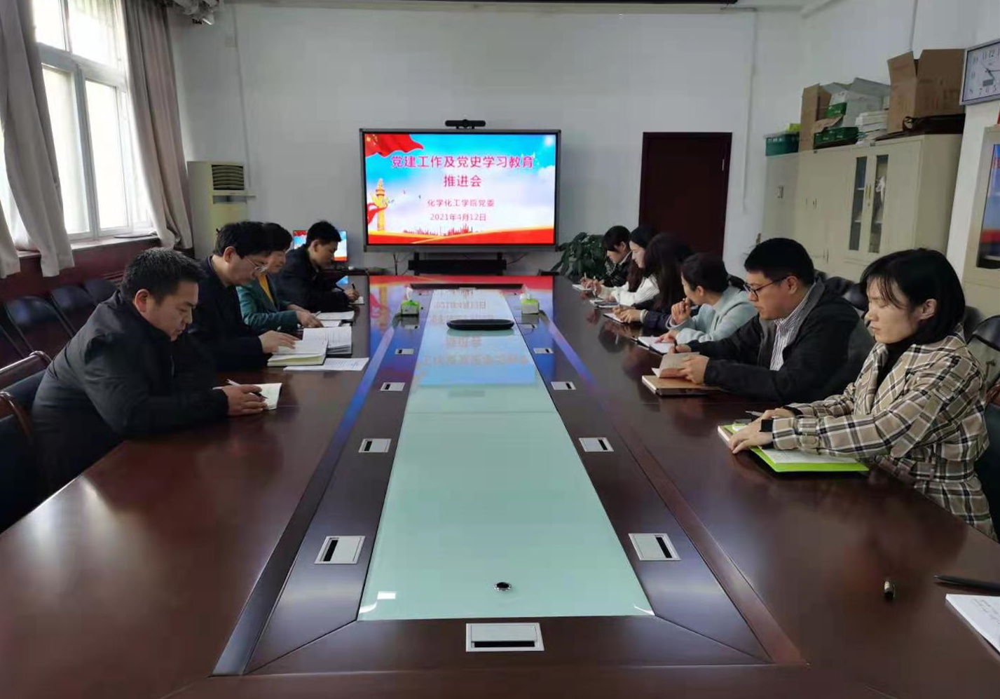 4月12日下午,化学化工学院党委在学院会议室召开党建工作暨党史学习教育推进会。院党委委员、支部书记参加了会议。会议由院党委书记赵亦芳主持。