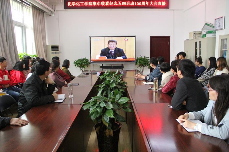 4月30日上午,纪念五四运动100周年大会在人民大会堂举行,中共中央总书记、国家主席、中央军委主席习近平出席大会并发表重要讲话。化学化工学院组织部分教师、团学干部、青年团员在学院会议室一起收看大会现场直播,认真学习习近平总书记重要讲话精神。