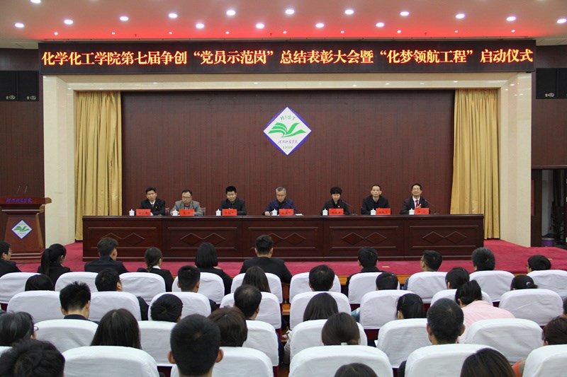 为深入学习贯彻全国全省思想政治工作会议和全国教育大会精神,进一步加强和改进思想政治工作,4月25日下午,化学化工学院第七届争创“党员示范岗”总结表彰大会暨“化梦领航工程”启动仪式在行政楼308会议室召开。校党委副书记宋亚伟出席会议,校党委学工部(学生处)、校团委等单位负责人及化学化工学院党政领导班子、全体教师、学生党员、学生代表等300余人参加了会议。