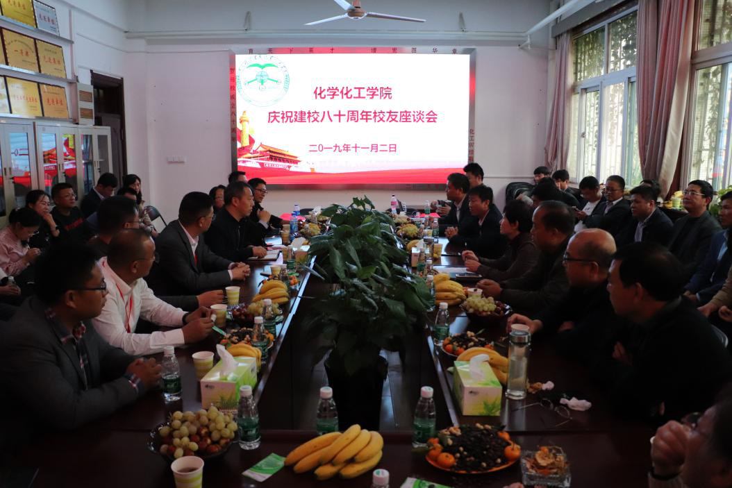 为庆祝建校80周年,11月2日下午,化学化工学院在学院会议室举行校友座谈会,共话师生情谊,共谋学院发展。来自各地的校友、学院领导班子、离退休和在职教师代表等60余人参加了会议。