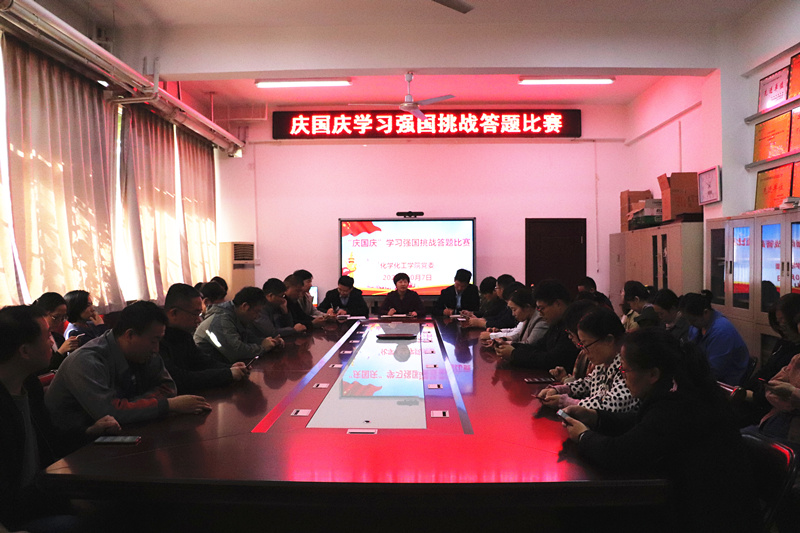 为进一步加强党员理论学习,充分发挥“学习强国”平台的作用,10月7日上午,化学化工学院在学院会议室举行“庆国庆”学习强国挑战答题赛,全体党员参加了比赛。