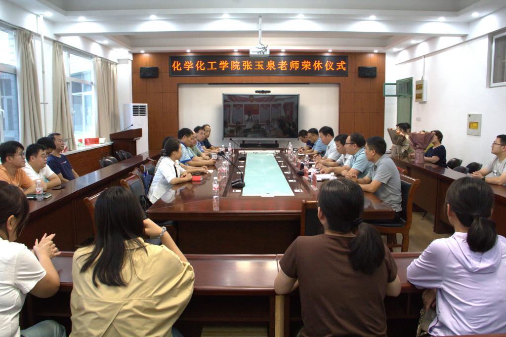 岁月峥嵘如歌,教育芳华不朽。9月14日下午,化学化工学院在实验楼D308会议室举行张玉泉老师荣休仪式。学院领导班子成员及部分老教授、青年教师代表参加了仪式。荣休仪式由学院副院长杨理主持。