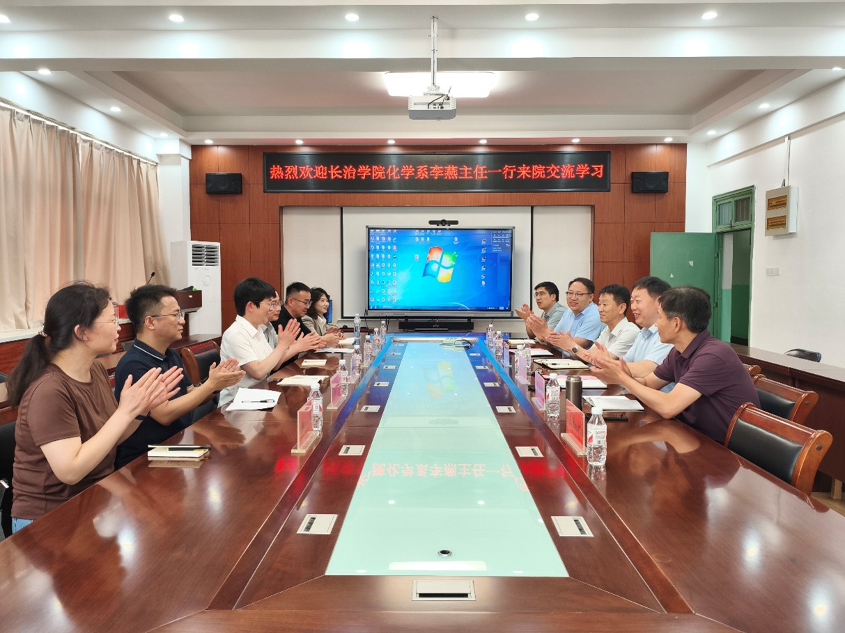 孙震寰对李燕一行的到访表示欢迎。许光日介绍了我院办学的基本情况,特别强调了两校在平台建设和人才培养方面的合作潜力,期待通过资源共享推动双方共同发展。随后,分管副院长分别从本科生培养模式、科研及人才引进模式和研究生培养三方面进行了详细的介绍。李燕对长治学院化学系的历史沿袭、产学研融合实践及未来发展目标进行了详细的介绍。会后,李燕一行参观了我院本科教学实验室、博士科研实验室、分析测试中心等实验平台。