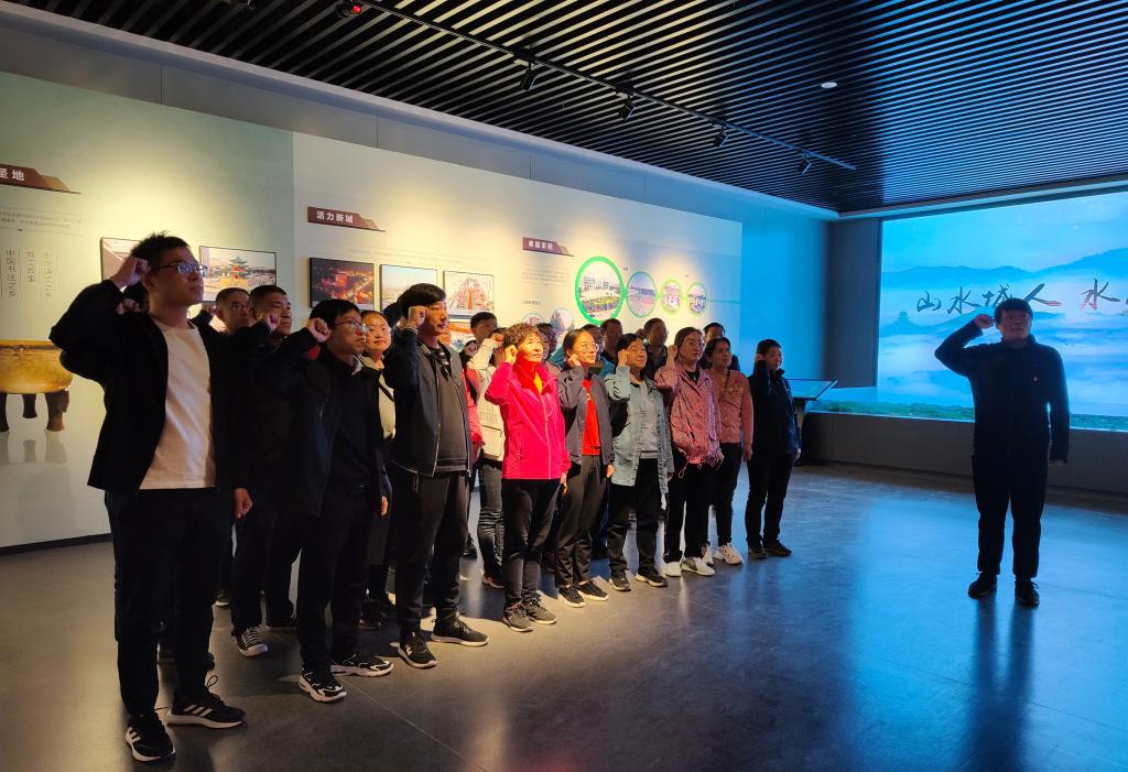 在辉县人民干得好展览馆,在讲解员的引领下,通过一张张历史照片、一段段珍贵录像、一个个复原场景,再现了上世纪六七十年代,以郑永和为代表的共产党人,带领辉县人民改变贫穷落后面貌所进行的自力更生、艰苦创业、战天斗地、治山治水的英勇壮举,感悟辉县人民不怕困难、艰苦奋斗、甘于奉献、苦干实干、敢叫日月换新天的“辉县精神”。在鲜艳的党旗下,全体党员庄严宣誓,重温入党誓词,表达为共产主义事业奋斗终身的信心和决心。