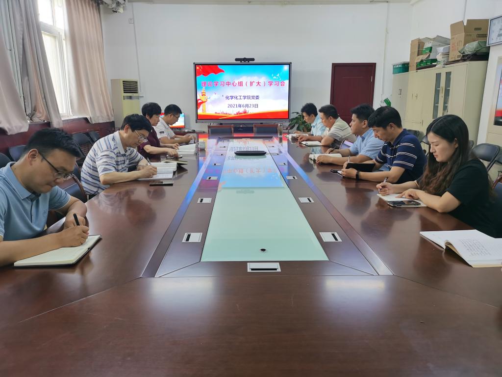 6月23日下午,化学化工学院在学院会议室召开党委理论学习中心组(扩大)学习会,学院领导班子成员、科级干部参加了会议。会议由院党委书记赵亦芳主持。