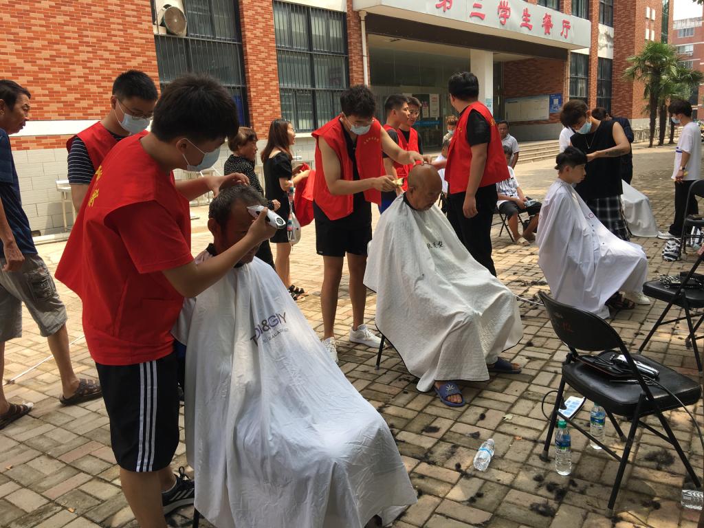 同时,学院党委积极联系红旗区艺昕美发沙龙,邀请10名爱心理发师来校,为受灾群众义务提供理发服务,在人手不够的情况下,学生志愿者也积极参与为安置群众理发、刮胡子。师生志愿者们真真切切为受灾群众着想,扎扎实实为受灾群众提供便利,他们的努力付出得到了大家的认可。