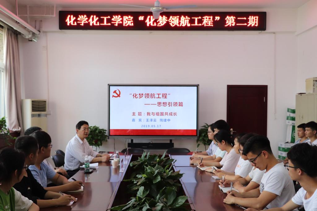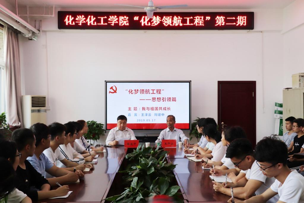 为加强爱国主义教育,引导青年大学生坚定理想信念,5月16日下午,化学化工学院在学院会议室举行“化梦领航工程”之思想引领篇第二期师生交流会。全体辅导员,学生代表40余人参加了交流会。会议由院党委副书记朱宏主持。