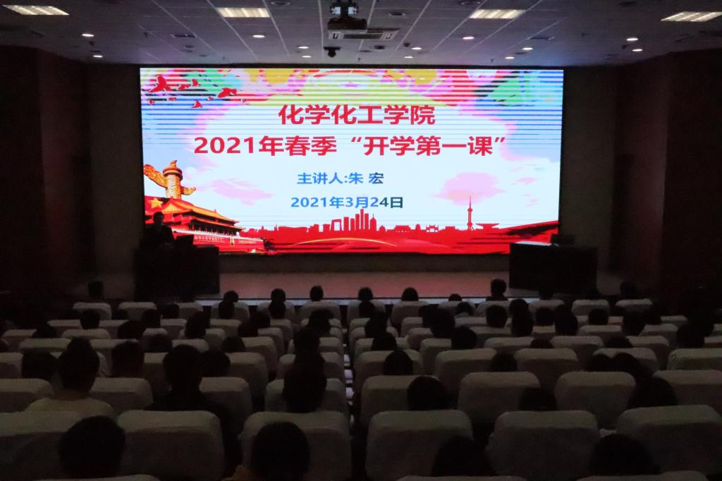 为传承红色基因,汲取奋进力量,3月24下午,化学化工学院党委副书记朱宏在图书馆一楼报告厅为2020级学生讲授新学期“开学第一课”。