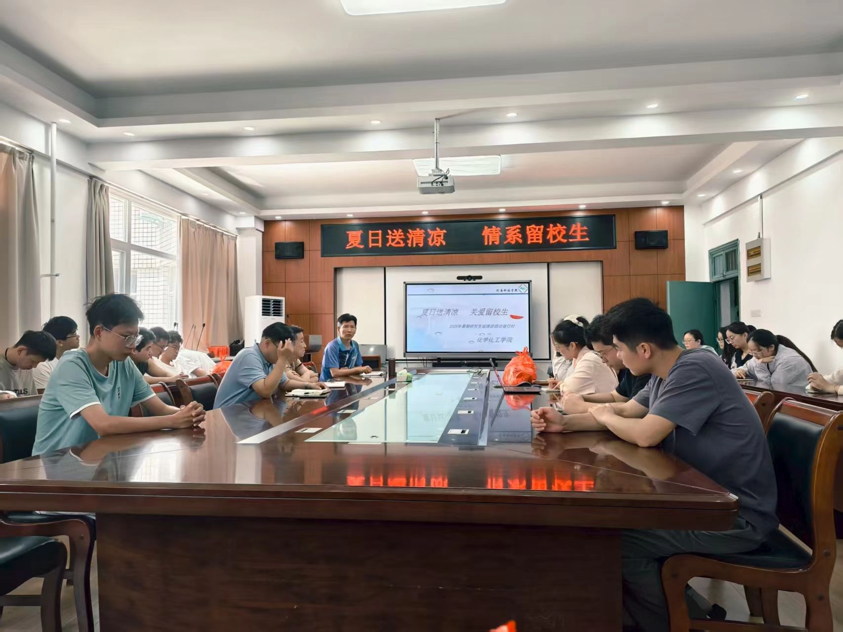 近日我省持续高温,为更好地关心留校研究生的学习、科研和生活,7月24日上午,化学化工学院在实验楼D308会议室举办“夏日送清凉,关爱留校生”研究生座谈会和慰问活动。化学化工学院院长许光日、党委副书记谷永庆、副院长王松林、研究生秘书赵翔、研究生辅导员仝亚艳及全体留校研究生参加。会议由学院副院长王松林主持。