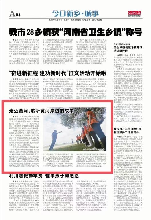 为深入学习宣传贯彻习近平新时代中国特色社会主义思想和党的二十大精神,引导青年学生感受时代巨变、坚定责任担当,近日,化学化工学院组建了“勇担使命绽放靓丽青春,助力黄河流域生态保护”实践团队赴封丘县陈桥镇开展实践活动。本次社会实践活动被学习强国、新乡广播电视台、平原晚报等多家媒体报道。