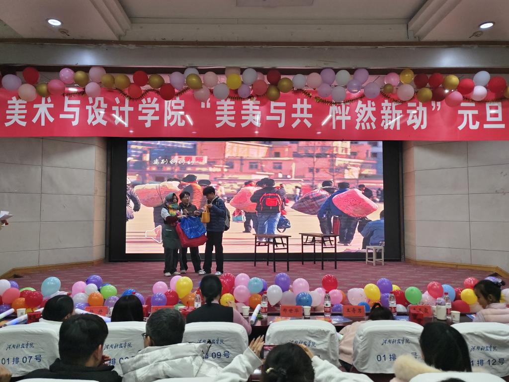元旦祥光绕,山河淑气催。为庆贺元旦佳节,提升学院的凝聚力和向心力,绽放校园新活力,12月30日,美术与设计学院在博闻楼举办“美美与共,怦然新动”迎新暨元旦晚会。学院师生共300余人观看了本次晚会。