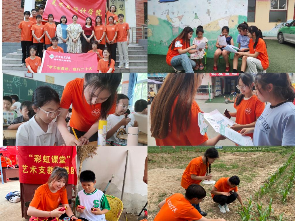 学院以党的二十大精神理论普及宣讲、党史学习教育、教育关爱、乡村振兴、社会发展成就观察、非遗文化宣传等实践主题为方向,组建了18支主团队、若干支分团队开展社会实践和志愿服务活动。同学们紧密围绕本次活动主题,走进基层,宣讲理论知识,践行党的二十大精神;在田间地头观察农村农业新变化,在乡村小道细致调研助力乡村振兴;寻找民间艺术家,探索非遗文化;优秀传统文化进课堂,助力“双减”政策落实落地;关爱留守儿童,守护七彩童年……大学生们积极投身社会实践活动,以实际行动开展学习贯彻习近平新时代中国特色社会主义思想主题教育,脚踏实地,踔历奋发,以饱满的精神状态奉献青春力量,展现青年学子爱党爱国的坚定信念和锐意进取的良好精神风貌。