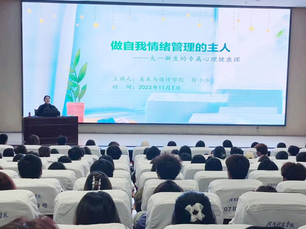 为扎实推进美术与设计学院心理健康教育宣传月活动,美术与设计学院开设了“心理健康教育专题课堂”。11月1日上午,在图书馆一楼学术报告厅,学院党委副书记徐小玉为全体2023级新生作了第一场讲座。