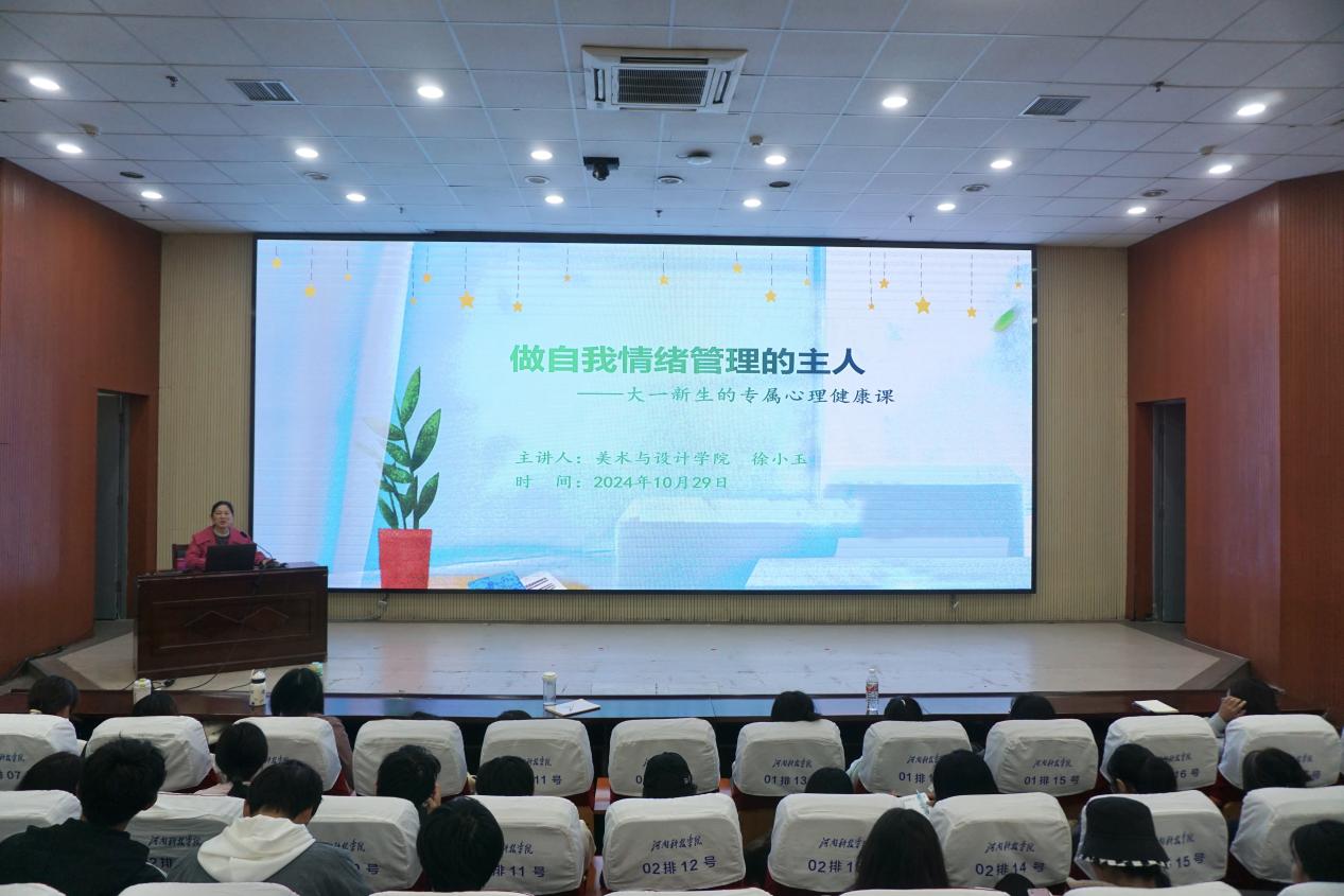 10月29日和11月5日,在图书馆一楼报告厅,我院党委副书记徐小玉分两批为全体2024级新生进行了心理专题讲座。她以“做自我情绪管理的主人”为题,结合典型案例,鼓励同学们快乐学习、阳光生活,学做自己的情绪管理专家。