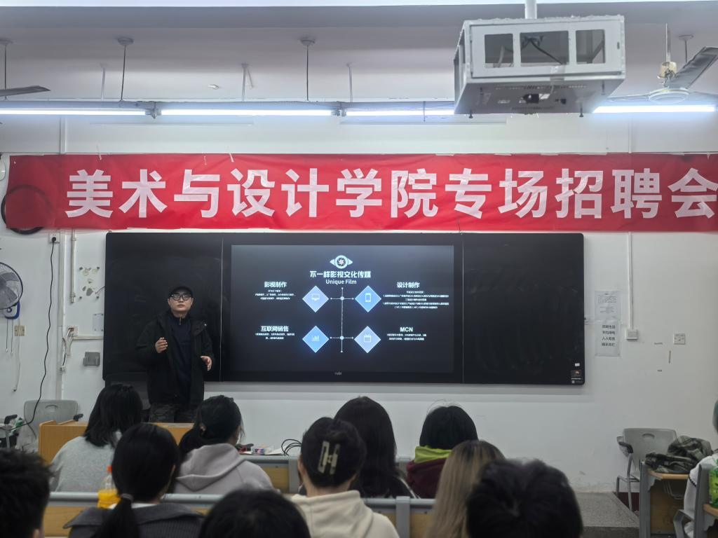 本次专场招聘会主要面向设计类、美术类、动画类专业毕业生,受邀的KD定制家居、鼎鼎装饰、顶艺空间设计、不一样影视文化传媒等企业提供了室内设计师、美术编辑、动画设计、制绘图员、助理剪辑师等多个就业岗位。按照招聘专业的相近性,各企业负责人通过播放宣传片、PPT展示、面对面交流的方式详细地向毕业生介绍了企业的文化、人才培养与发展方向、工作要求、岗位需求和薪资待遇等问题。到场的学生积极地与招聘人员进行交流,主动了解用人单位的基本情况并表达自己的求职意向。
