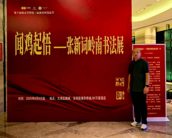 8月7-8日,由美术与设计学院和吉蛋堂推出的“闻鸡起悟——张新词岭南书法展”,在深圳大湾区前海华侨城JW万豪酒店展出。