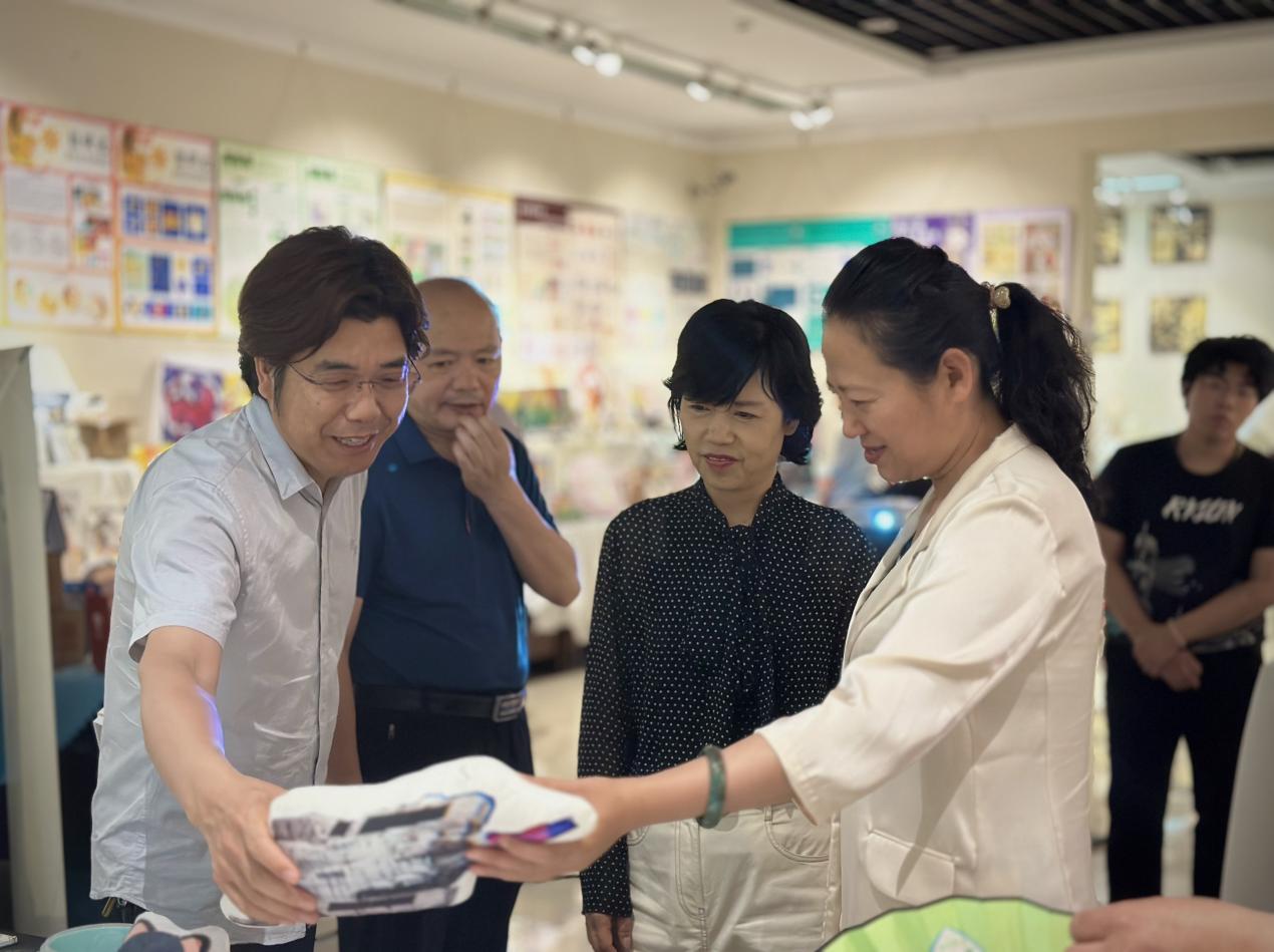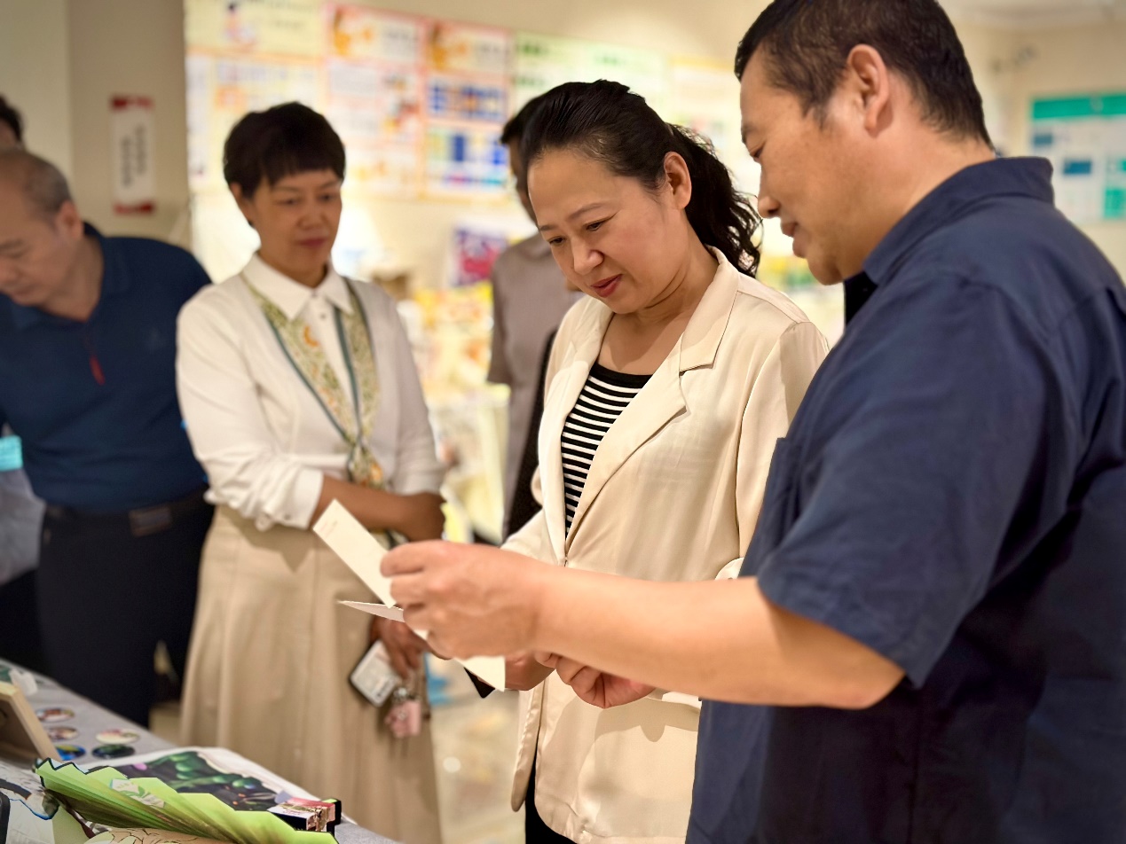 在参观过程中,姬泓一行对展览作品进行了细致的观察,对作品的独特之处和创作理念给予了中肯的建议和高度评价。姬泓对于作品中体现的艺术特色和创新精神给予充分肯定,对我院艺术教育成果以及对于新乡艺术教育事业的发展做出的贡献进行了赞扬,鼓励青年学子在创作中不断探索新的表达方式和技术手段,使艺术创新能力更上一层楼。她针对我院的专业优势,就文创产品开发,政府、高校和企业的产学研互动合作进行了阐述,希望借此毕业展促进新乡文旅文创产业的发展。