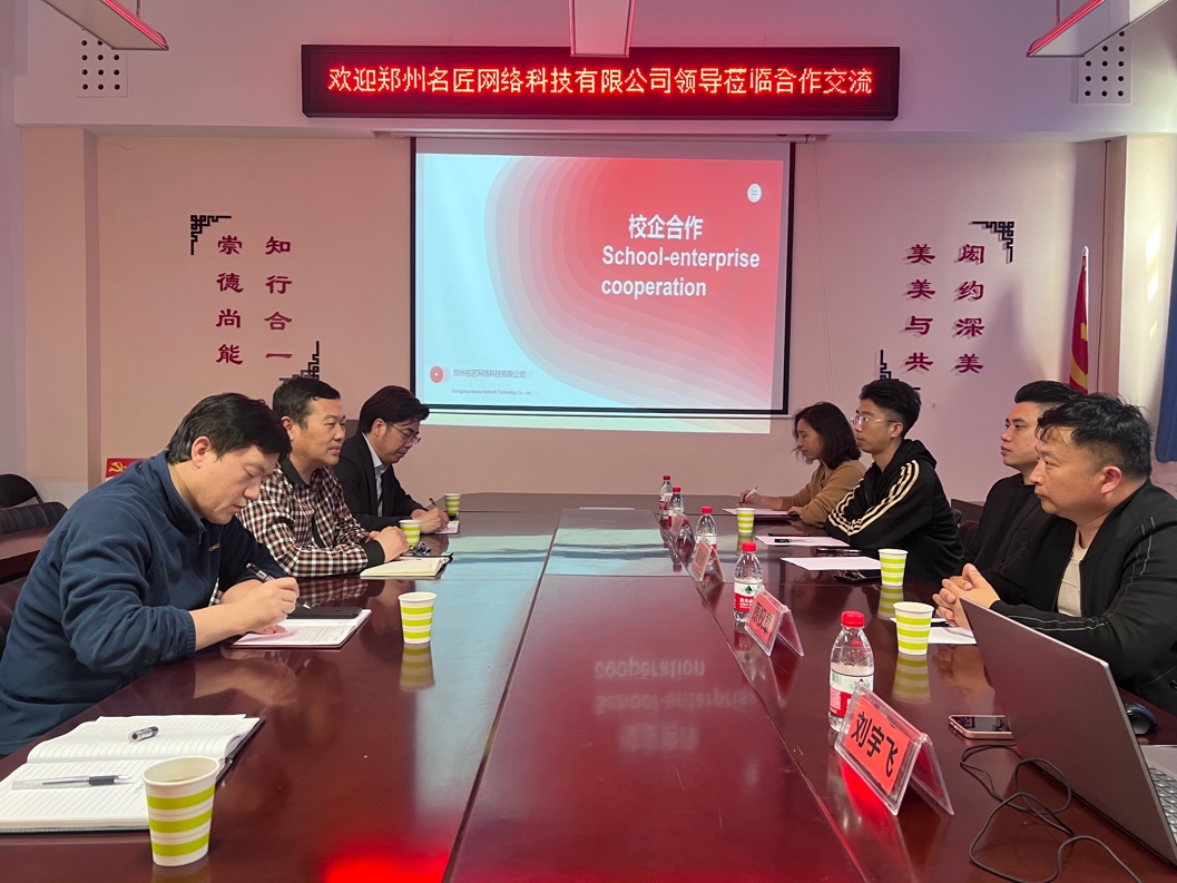 雷保杰首先对郑州名匠网络科技有限公司领导莅临学院表示欢迎,并介绍了学院发展、师资队伍、办学环境和人才培养等相关情况。随后双方就校企协同育人、共建行业学院、毕业生就业、设立学业奖学金等议题进行了合作洽谈。会议对双方各自发挥优势资源,稳步开展交流合作,实现动画人才供需高质量发展等主要内容形成了统一意见。
