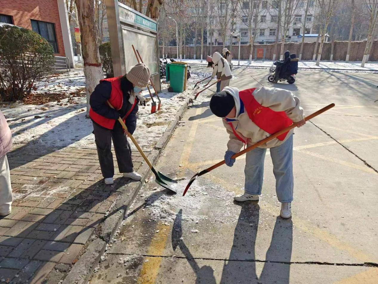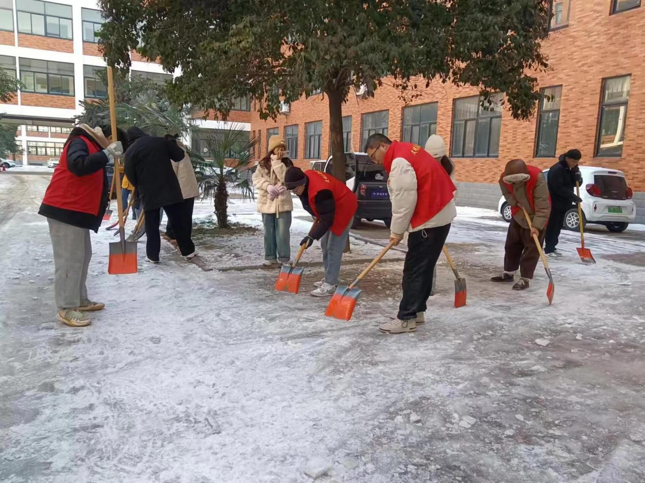 清雪现场,党员志愿者不畏严寒,干劲十足,挥舞着铁锹、铲雪铲,齐心协力,配合默契。经过师生的共同努力,清雪除冰成效显著。原本被积雪结冰覆盖的道路得到改善,为师生开辟了一条洋溢着暖暖温情的安全之路。