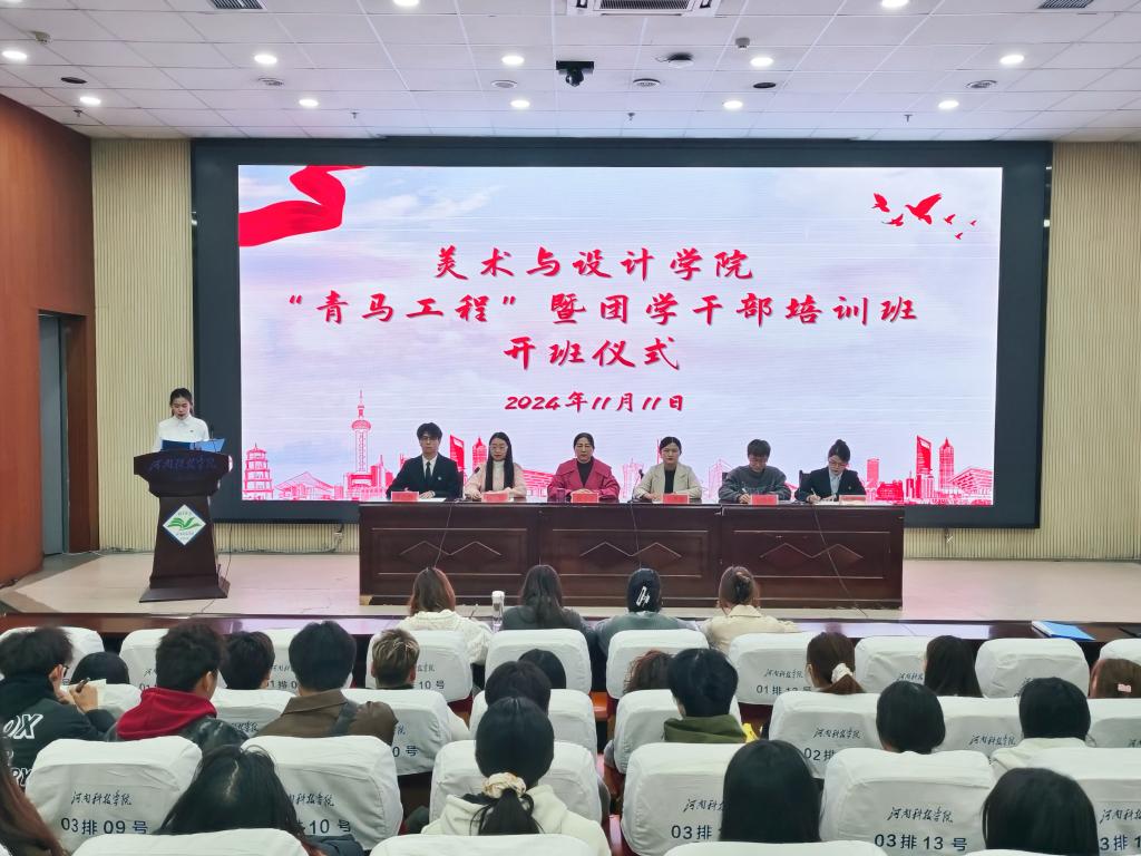 为深入贯彻落实习近平新时代中国特色社会主义思想,全面提升团学干部队伍综合素质,11月11日,美术与设计学院在图书馆一楼学术报告厅举办2024年“青马工程”暨团学干部培训班开班仪式。学院党委副书记徐小玉,团委副书记苏梦瑶、杨丹,兼职辅导员刘劭哲和2024届团委、学生会全体成员以及宿舍长共100余人参加了本次开班仪式。会议由杨丹主持。