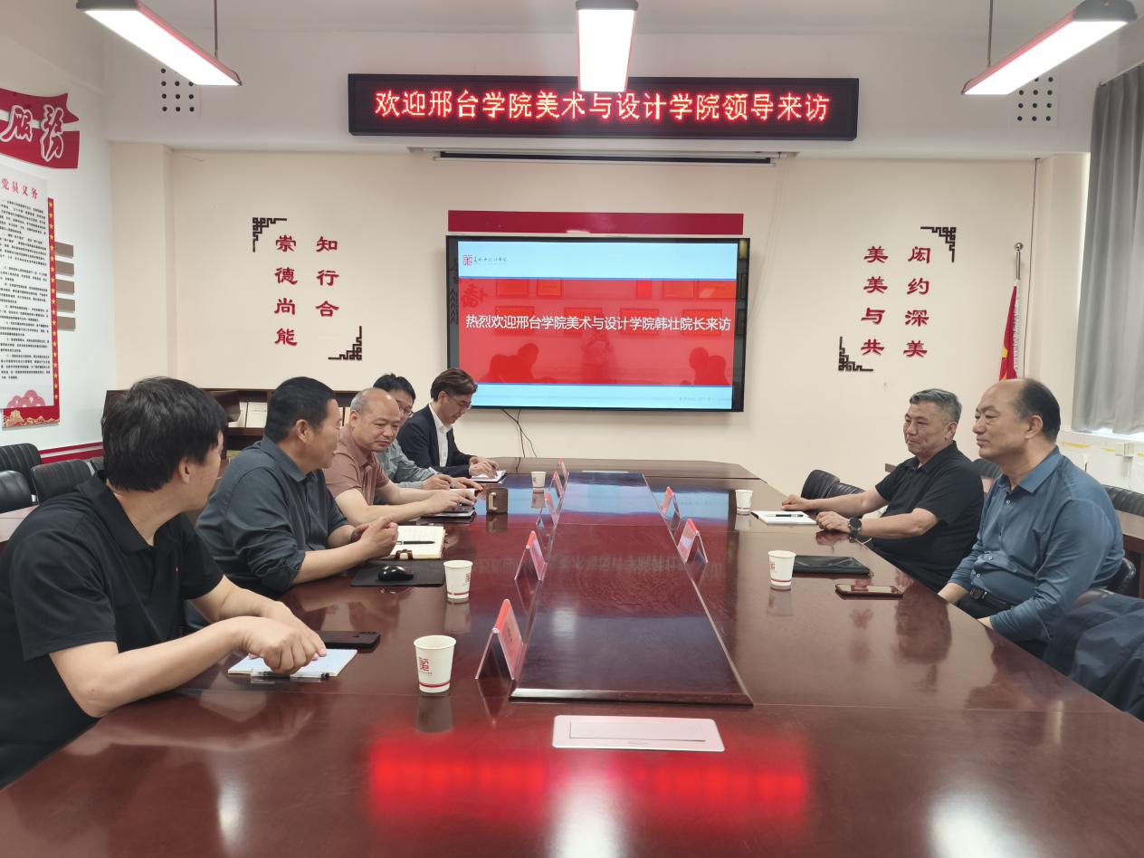 5月9日,邢台学院美术与设计学院院长韩壮、影视戏剧系主任陈志良带队莅临我院调研交流。座谈会在11号楼208会议室举行,我院党委书记张新词,院长雷保杰,副院长郑世华、田伟、胡国锋等参加座谈。双方围绕艺术类专业人才培养、校企校地合作、产教融合、研究生联合培养及学科交叉创新等议题展开深入探讨。