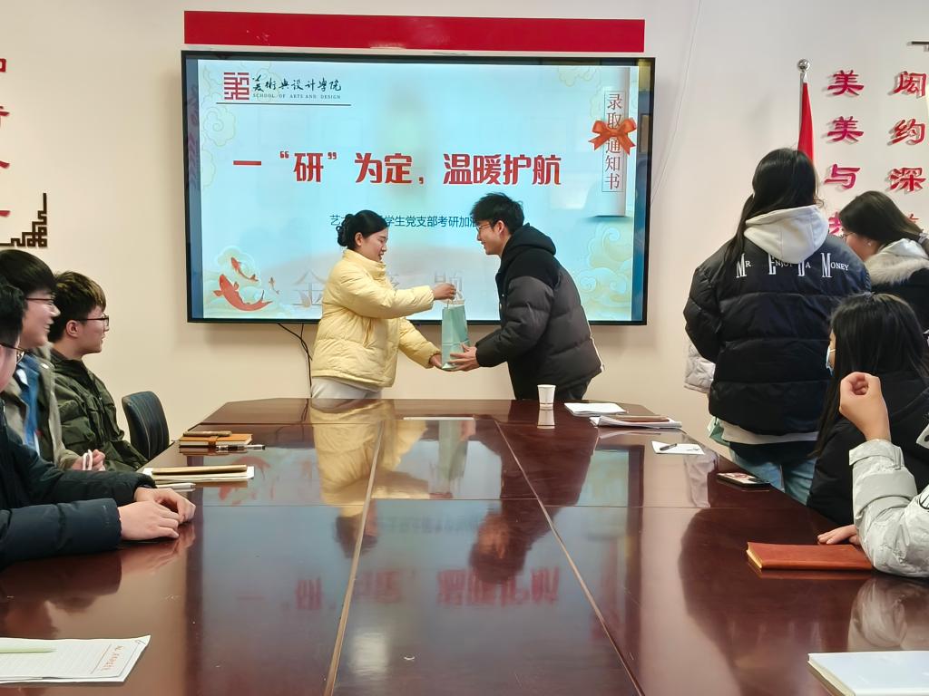 在考研加油活动中,学院低年级班级进行了精心的策划与组织,同学们积极参与,录制了充满正能量的加油视频。此外,同学们还细心准备了加油卡片以及寓意 “一战成硕” 的小礼物,每一张卡片上都承载着满满的祝福与鼓励。在学生党支部大会上,支部书记苏梦瑶将学院党委的温暖和关怀传递给考研学生党员。根据学生备考实际情况,毕业生辅导员杨丹前往专业课教室、图书馆、考研教室等,逐一将充满祝福和期望的考研大礼包送到每位考研学子手中,并给同学们分享了备考经验和建议,勉励同学们合理安排时间、保持平和心态、坚持到最后关头,真诚祝愿每位美术学子都能发挥自己的最佳水平,为考研之路画上圆满句号。