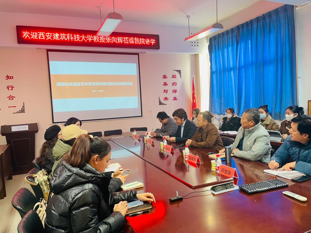 11月24日下午,美术与设计学院在11#208会议室举办“国家社科基金艺术学项目申报书撰写与课题申请”主题讲座。本次主讲嘉宾邀请了西安建筑大学张向辉教授,讲座主持人由美术与设计学院副院长胡国锋教授担任,院长雷保杰、副院长田伟、副院长郑世华出席本次讲座。我院任课教师、艺术设计方向研究生到场聆听。