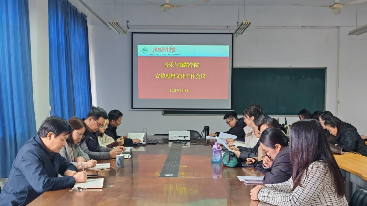 3月6日下午,音乐与舞蹈学院在8508会议室召开宣传思想文化工作会议,全体教师参加会议。会议由学院党委书记魏军鹏主持。