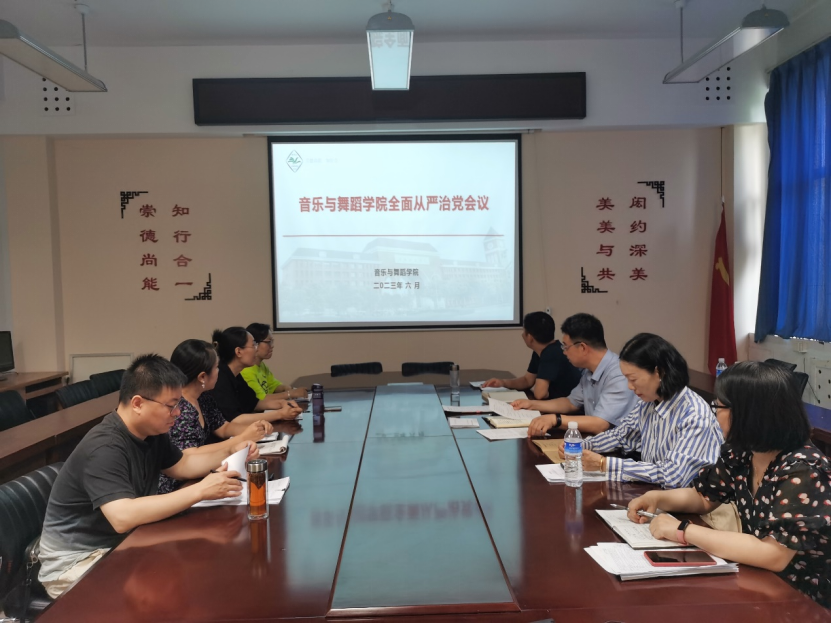 6月27日下午,音乐与舞蹈学院在11号楼208会议室召开全面从严治党工作专题会议。会议由学院党委书记魏军鹏主持,全体科级以上干部参加。