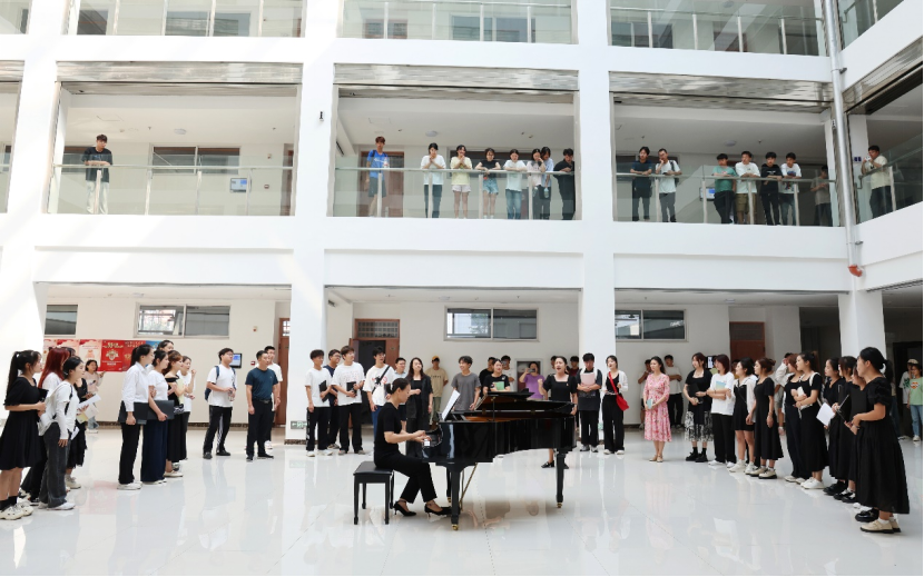 9月4日,我校开学第一天,音乐与舞蹈学院师生在东区弘善楼上演了一场别开生面的快闪活动,吸引路过师生驻足观看,场面热烈,为全校师生带来一堂特别的“开学第一课”。