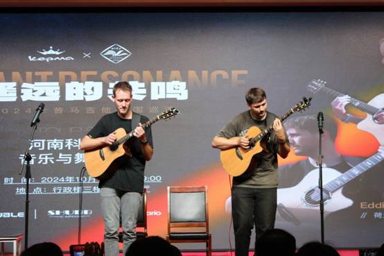 10月16日晚,由河南科技学院音乐与舞蹈学院、卡普马吉他共同主办,河南侯国良吉他工作室协办的2024卡普马Casper&Eddie中国巡演第一站在河南科技学院行政楼308报告厅盛大开演。此次音乐会特邀的音乐家是来自丹麦的指弹演奏家Casper与来自荷兰的指弹演奏家Eddie。