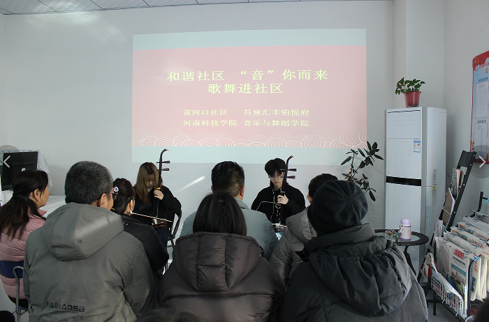 活动开始,音乐222班的李昀泽和李颖异共同带来一首二胡合奏《赛马》,随后,音乐221班张慧敏演唱了歌曲《如愿》和《莫尼山》,生动地体现了词中有情,曲中有意,现场气氛迅速活跃起来。表演结束后,社区居民与志愿者们围绕歌曲演唱、乐器弹奏等内容进行了交流。