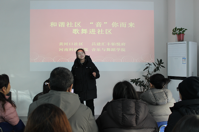 为助力社区居民的文化生活,更好地发扬志愿服务精神,12月6日上午,音乐与舞蹈学院青年志愿者协会来到黄河口社区,开展“和谐社区,‘音’你而来”歌舞进社区志愿服务活动,团委书记左玉含和16名青年志愿者参加了此次活动。