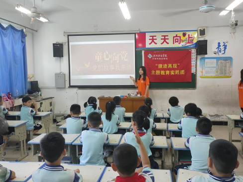 活动中,实践队员们结合专业特色,精心设计课堂教学,围绕爱国主义教育、民族团结教育、安全教育等主题,用音乐和舞蹈的形式给小朋友们上了一堂生动的主题教育课。课上,孩子们听得津津有味,与实践队员们热情互动,在实践队员们的引导下,用动听的歌声和优美的舞姿表达对党和国家的热爱。