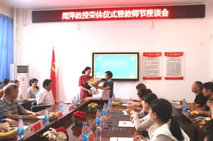 9月9日下午,服装学院在11204会议室举行周萍教授荣休仪式暨教师节座谈会。服装学院联点校领导、副校长曹国杰出席,人事处副处长张翼和服装学院全体教职工参加会议。会议由服装学院党委书记郭建勋主持。