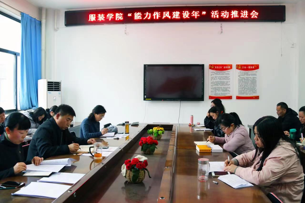 3月17日下午,服装学院在11号教学楼204会议室召开“能力作风建设年”活动推进会,学院党政领导班子成员、科级以上干部参加会议。会议由院长常丽霞主持。