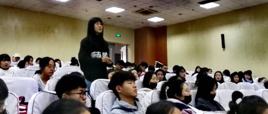 在报告中,白志刚教授针对服装专业学生的职业发展抛出了多个极富有专业关注度的问题,引发了学生的广泛回应,并以依此展开了逐步深入、层层递进、富有诱发力的演讲内容。在座师生积极主动地参与其中,在关键环节予以积极回响。白志刚教授在演讲中首先针对杭州、郑州的服装产业进行了对比与梳理,其次针对产业发展动向对时尚类人才培育规格进行了剖析,引发了学生们的职业发展规划思考。最后,白志刚教授谈到了课程选择与学习计划的设计,这启发了师生们更广泛的议论与思考。整个过程,白志刚教授以问题为导向,在给人深刻思考的同时,更以诙谐幽默的语言和声情并茂的表达手段获得了在座师生的阵阵掌声。