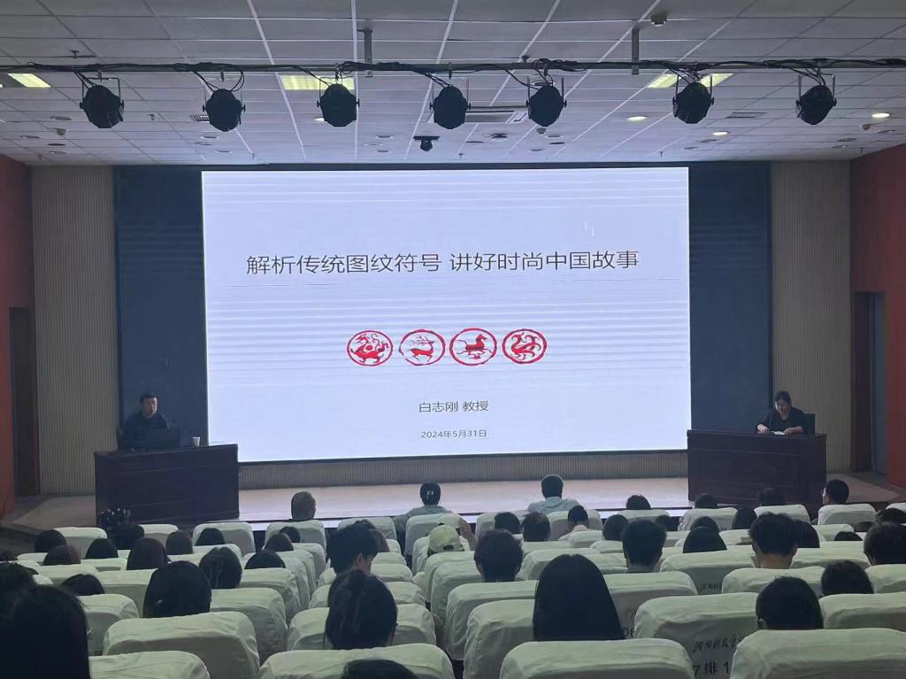 5月31日下午,杭州职业技术学院白志刚教授在我校图书馆一楼报告厅举行题为“解析传统图纹符号,讲好时尚中国故事”的学术讲座。本次讲座由服装学院院长商亚敏主持,院党委书记游红伟、副院长王式竹、郭海燕及全院师生300余人参加。