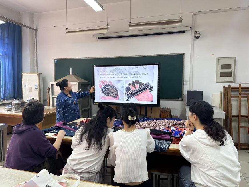 在专业培训的过程中,服装学院充分发挥传统手工印染技艺产学研特色优势,采取理论教学、案例教学和实践教学相结合的方式,将传统印染工艺与现代设计艺术相融合,指导学员共创作完成扎染、蜡染、漏板印花作品三十余件,充分展现了传统手工印染技艺的独特风采和魅力。在学习技艺的过程中,学员对我校提供的良好教学、生活条件表达了衷心地感谢,并表示后续会做好传统手工印染技艺的研究、传承和创新工作,培养更多学生积极创作大众喜爱的手工印染作品,为弘扬我国优秀传统文化作出贡献。