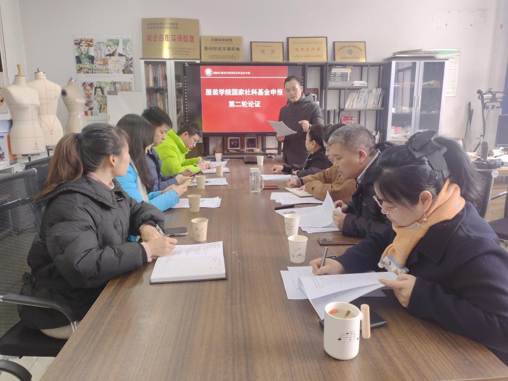 为全面落实《河南科技学院2024年度国家社科基金申报工作方案》要求,持续提升我院国家社科基金申报质量,2月22日上午,服装学院在11#214会议室召开第二轮国家社科基金项目论证会。学院邀请河南工程学院黄智高教授进行项目论证,学院党委书记游红伟、院长商亚敏、科研秘书于素利和申报教师等参加了论证会。会议由副院长王式竹主持。