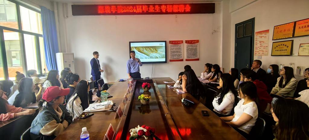 会后,学院分别组织盛泰集团和新乡市新科防护科技有限公司两家企业进行了专场招聘宣讲会和现场面试。