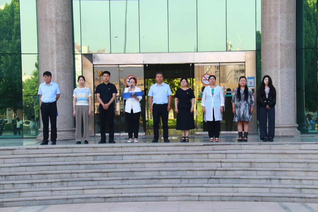 6月3日清晨,服装学院在致远广场举行“文明启航,筑梦科院”升国旗仪式。学院党政领导班子成员出席仪式,辅导员、2024届毕业生、全体在校生共600余人参加了升旗仪式。升旗仪式由学院团委书记侯小鹏主持。